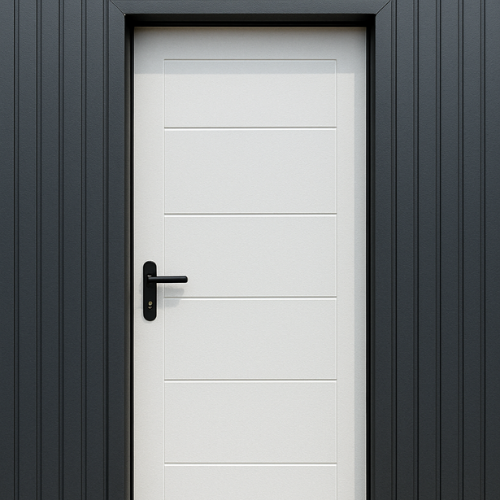 W naszych garażach montowane są praktyczne drzwi boczne, zaprojektowane z myślą o wygodzie i trwałości. Zastosowaliśmy jednoskrzydłowe drzwi stalowe o szerokości 1 metra, wykonane z obustronnie ocynkowanej i poliestrowo malowanej blachy stalowej, co zapewnia ich odporność na warunki atmosferyczne i uszkodzenia.